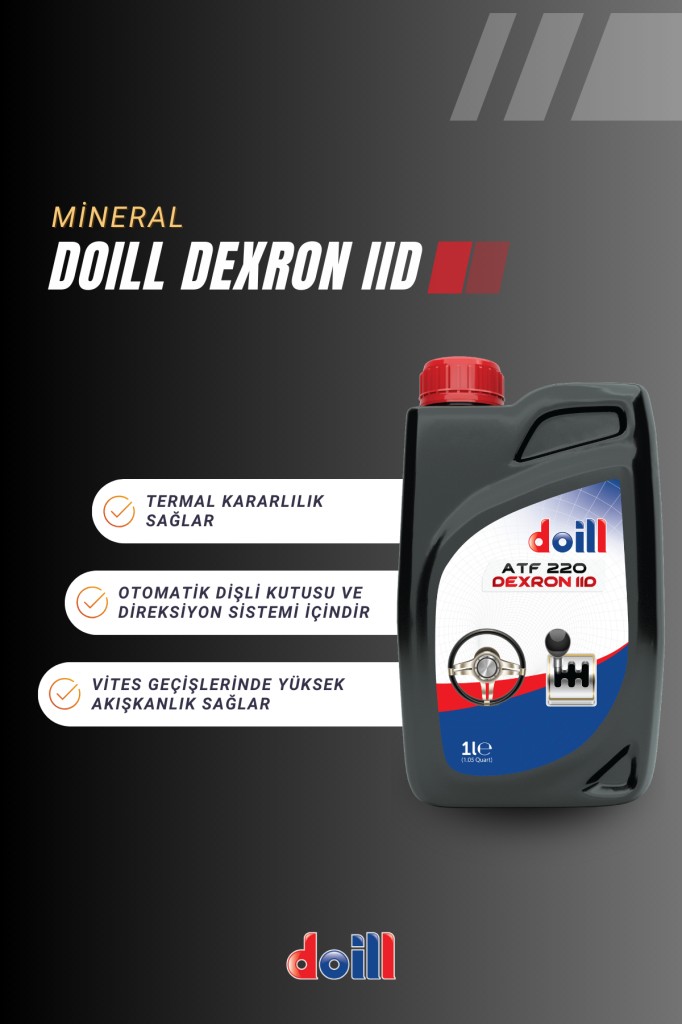 Doill ATF 220 DEXRON II-D, Otomatik Şanzıman Yağı, DEXRON II-D standartlarının gerektirdiği, otomatik dişli kutusu, şanzıman, tork konvektörü, direksiyon sistemi, hidrolik uygulamalar, tekne geri vitesinde ve benzeri uygulamalarda kullanılır.