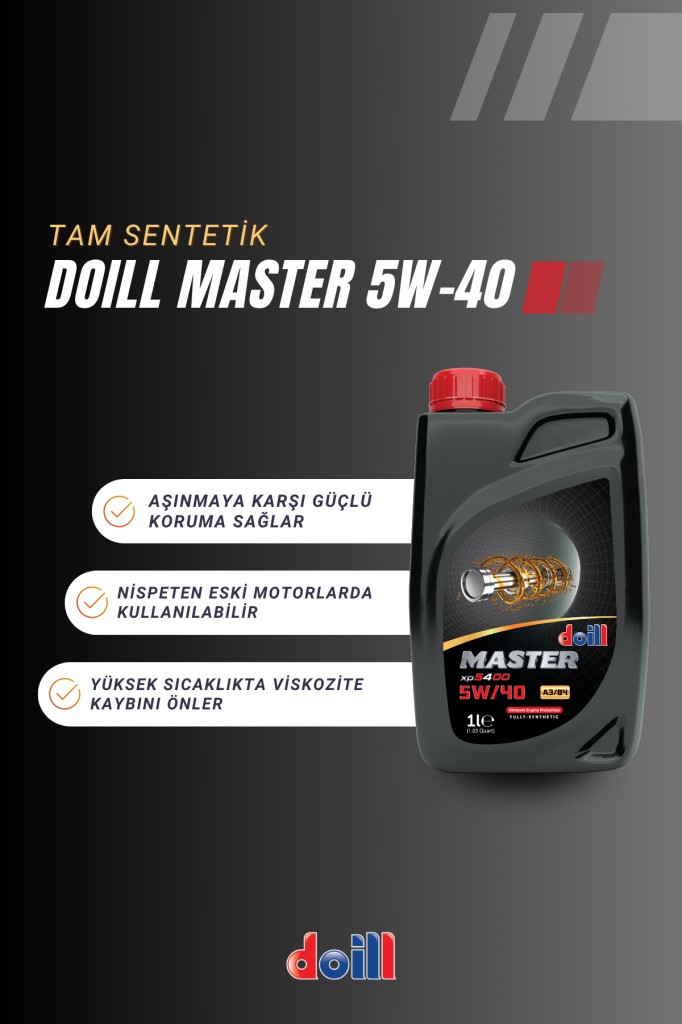 Doill MASTER xp5000 5W/40, geniş sıcaklık aralığında artırılmış koruma ile birlikte pek çok türdeki ve yaştaki araç için uzun motor ömrü sağlayan tam sentetik motor yağıdır. Doill MASTER xp5000 5W/40 ürünleri, geleneksel veya yarı-sentetik yağların ötesinde bir koruma sağlamak üzere formüle edilmiştir. Yüksek motor geriliminin neden olduğu hasarla düzenli olarak karşılaştığınız durumlar için tavsiye edilir.