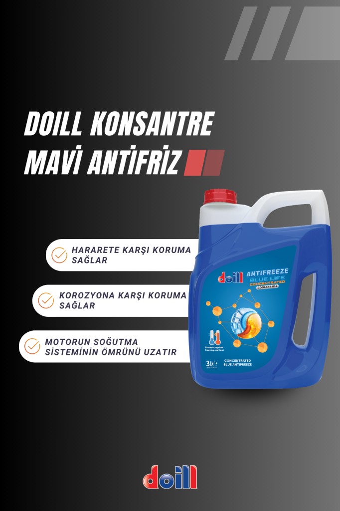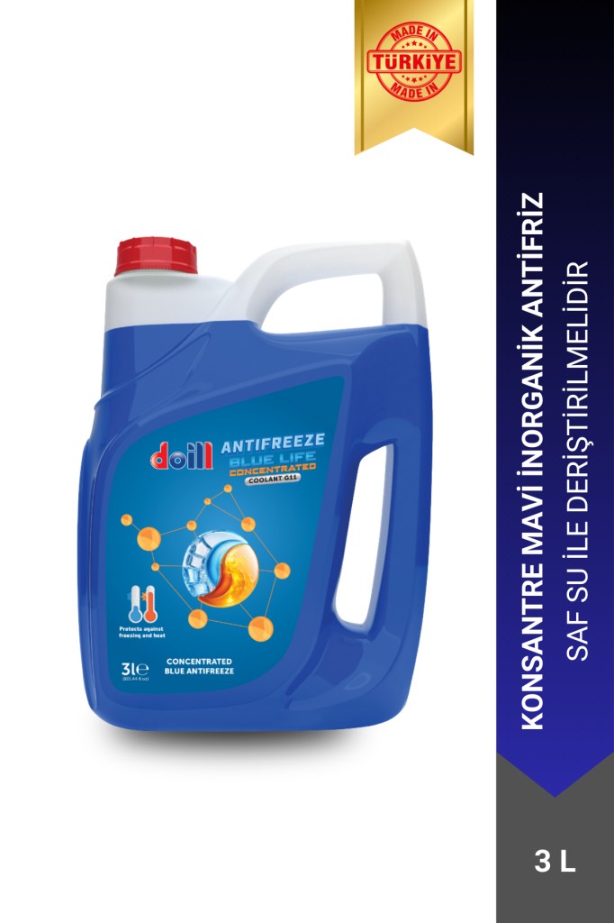 Doill BLUE LIFE ANTIFREEZE mono etilen glikol içeren, inorganik katık teknolojisi ile harmanlanmış, saf (konsatnre) soğutma sıvısıdır. Kullanımı maksimum performans için % 60 konsantre antifriz %40 su, ideal performans için % 50 antifriz %50 su ile karıştırılarak kullanılmalıdır. Bu ürün tüm mono etilen glikol bazlı inorganik soğutma sıvıları ile karıştırılabilir. Tüm soğutma sistemleri için önerilir. binek otomobiller, ağır hizmet, inşaat, tarım araçları, bahçe işleri, gemiler, sabit motorlar ve diğer endüstriyel uygulamalar.